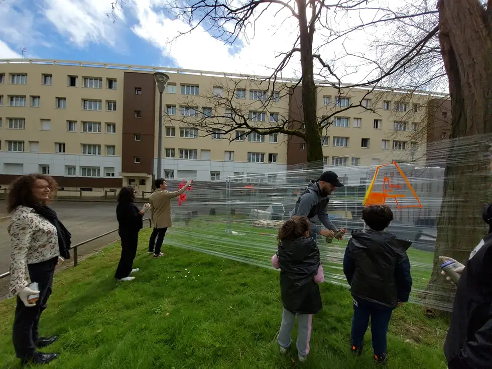 Un atelier Street-Art a été organisé le 3 avril 2024 avec les artistes Camille Le Tallec et Clément artistes du collectif Peint A la Main, démontrant comment l’art peut créer du lien entre les générations.